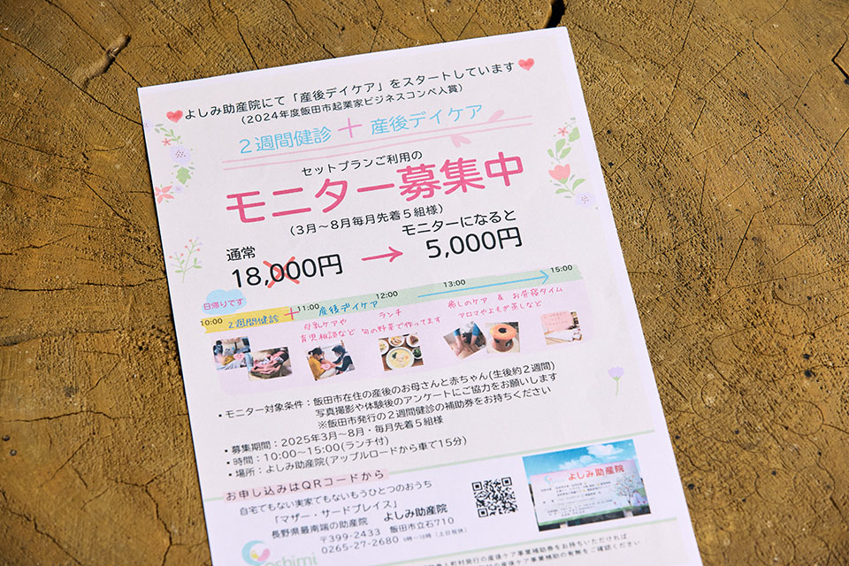 村松 心の不調は、だれでもなり得ることですからね。本当に困っている方だけではなく「疲れる前に利用したい」「ちょっと誰かに聞いてほしい」という方にも、もっと気軽に産後デイケアを利用してもらいたくて、2025年の3月から8月まで、飯田市在住の方限定のモニター企画を実施しているんです。毎月、先着5組の方に通常価格よりもお得に利用いただいています。「まずは体験してみませんか」と。