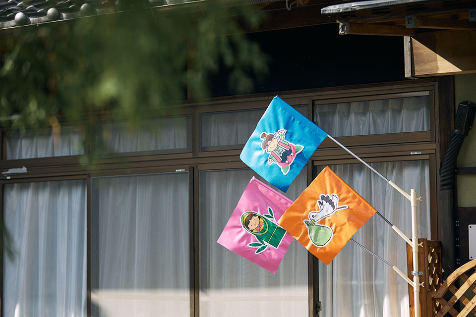 よしみ助産院では飯田で開業した当初から、間もなくお産を迎える妊婦さんが入院したらコウノトリ、男の子が産まれたら桃太郎、女の子が産まれたらかぐや姫の旗を看板の横に立てて、地域の方にお伝えしています。旗を立てたときに夕飯やおやつを持ってきてくれる方もいて、「近所に応援してくれる方がいるんだ」ということを知り、勇気をもらいました。