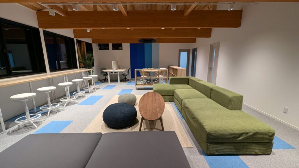 室内の照明は明るすぎず、自然光を活かしたバランスの良い設計。コワーキングスペースの窓際席に座ると、目の前の景色がまるで一枚の絵画のように切り取られ、作業の合間にふと顔を上げるだけで気分が切り替わります。ソファ席は柔らかすぎず、打ち合わせや雑談、気分転換の場としてちょうど良い印象でした。