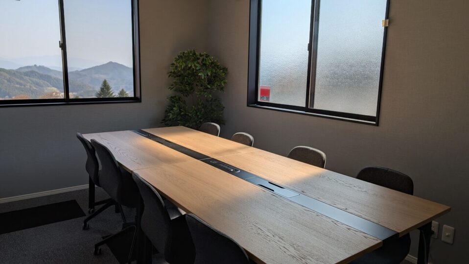 8席のテーブルにプロジェクターを備え、社内会議から研修、オンラインミーティングまで対応可能。法人プランではプランごとに無料利用時間が付与されており、一定時間は追加費用なしで使えるのも嬉しいポイントです。