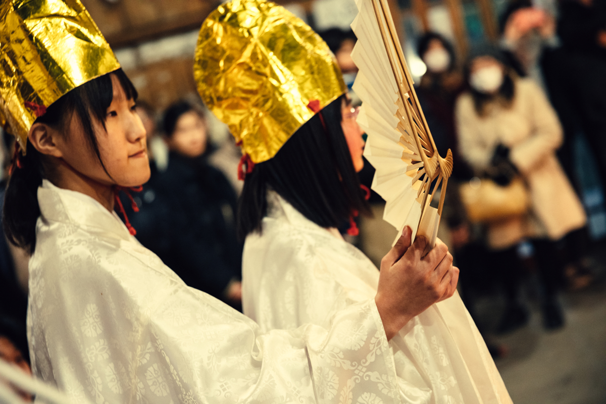 このようななか、氏子の高齢化で10年ほど前から湯立神楽を中止していた神社で、東京の私立高校の生徒たちと地元の小学校の児童たちが祭りの舞を行ったという明るいニュースもあります。また、地元中学校では毎年行う文化祭で各地区の舞を練習し披露することで伝統を守ろうとする動きもあるようです。