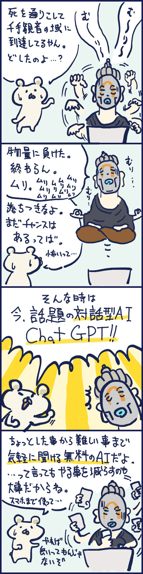 私はまだ使い込んでいないので上手く活用しきれて無いですが、それでもこの程度の事はできました。もっと使いこなせるようになり、もっと進化したAIになったらどうなっちゃうんでしょうね?スゴい世の中になってきたもんです。