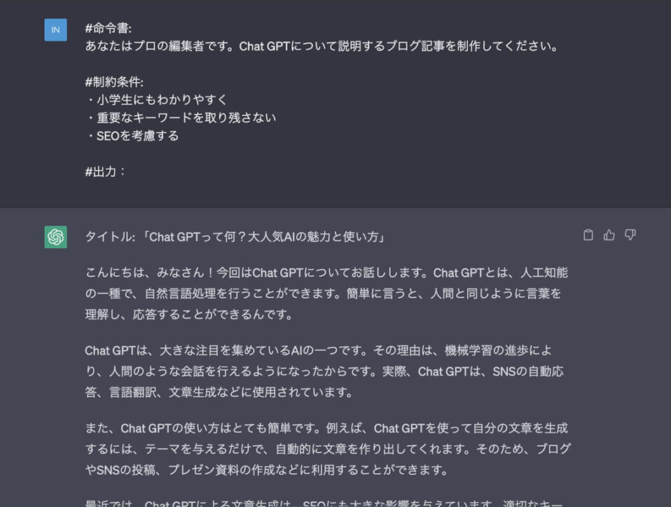 Chat GPTの使い方はとても簡単です。例えば、Chat GPTを使って文章を生成するには、何か簡単なテーマを与えるだけで、自動的に文章を作り出してくれます。そのため、ブログやSNSの投稿、プレゼン資料の作成などに利用することができます。