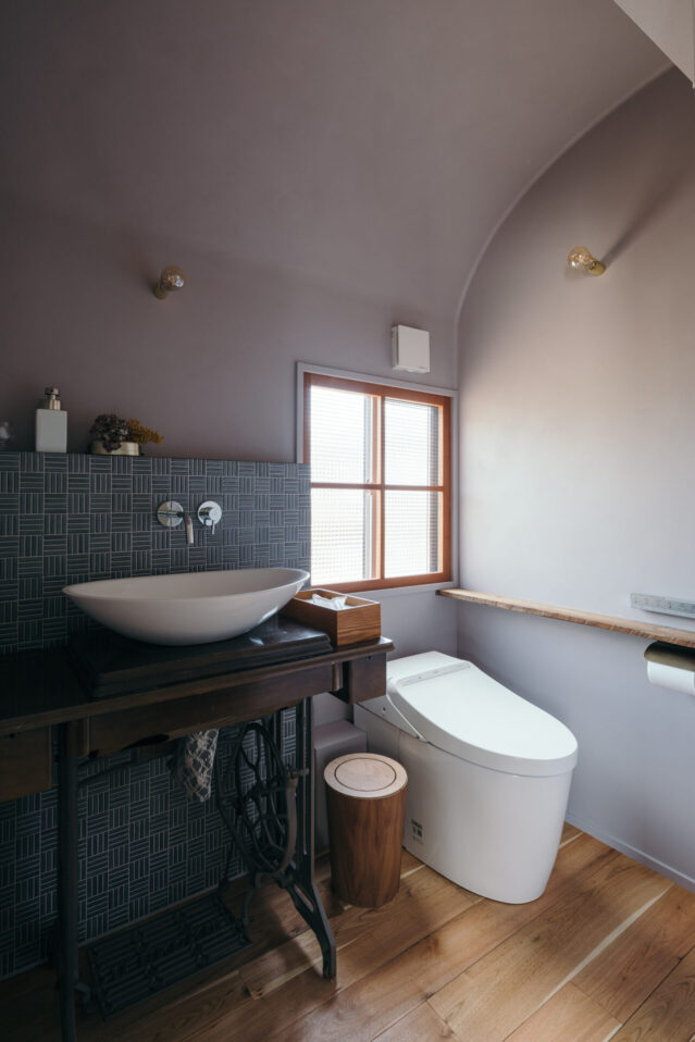 湾曲した天井が特徴的なセンス抜群なトイレは女性にも使いやすそうです。