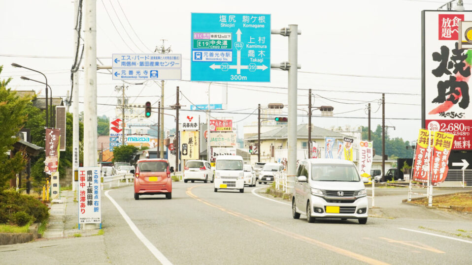 「studio mok*mok」があるのは以前紹介したエスバードの近く。近くを通る国道153号線沿いにはお店が立ち並んでおり、外食する場合にも選択肢には困りません。立地はJR飯田線 元善光寺駅から1kmほど。少し駅からは離れますが一応電車でもアクセス可能なので、車を使えない環境でも通うことができます。