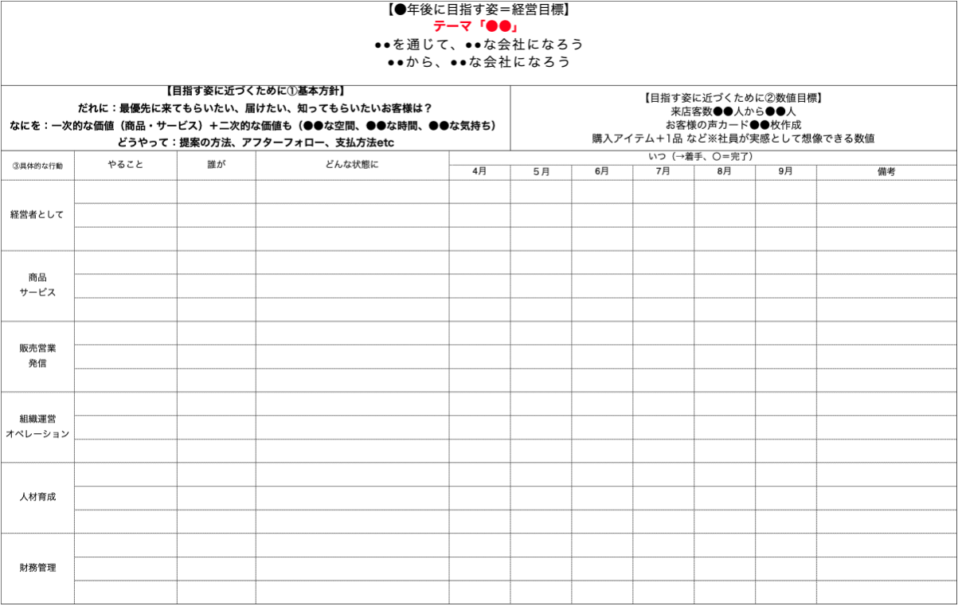 経営理念も事業計画も動かなければ「絵に描いた餅」。ダイエットの計画だけ作っても動かなければ痩せないのと同じで、現状に何の変化も起きません。