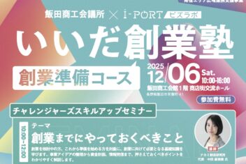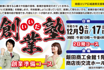 毎年多くの参加者が集う「いいだ創業塾」が今年も12月9日(土)、12月17日(日...
